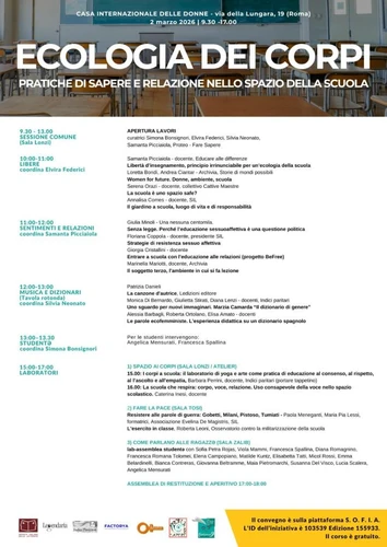Il 2 marzo 2026, nell’ambito di Feminism9, Fiera dell’editoria delle donne, si terrà a Roma la giornata di formazione dedicata al tema “Ecologia dei corpi. Pratiche di sapere e relazione nello spazio della scuola“, rivolta a docenti di ogni ordine e grado.