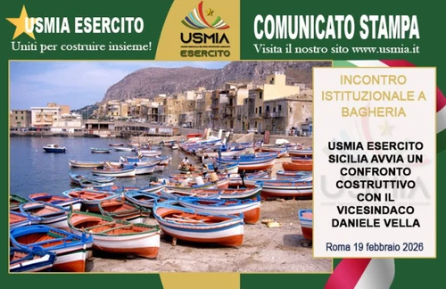 Osservatorio contro militarizzazione di scuole e università - Saturday, February 28, 2026Il comune di Bagheria, in provincia di Palermo, nella persona del vicesindaco Daniele Vella e l’Unione Sindacale Militare Interforze Associati (USMIA) Esercito Sicilia hanno tenuto un incontro pubblico, il 17 febbraio scorso, con la finalità di annunciare la loro collaborazione sul territorio (clicca qui per la notizia).