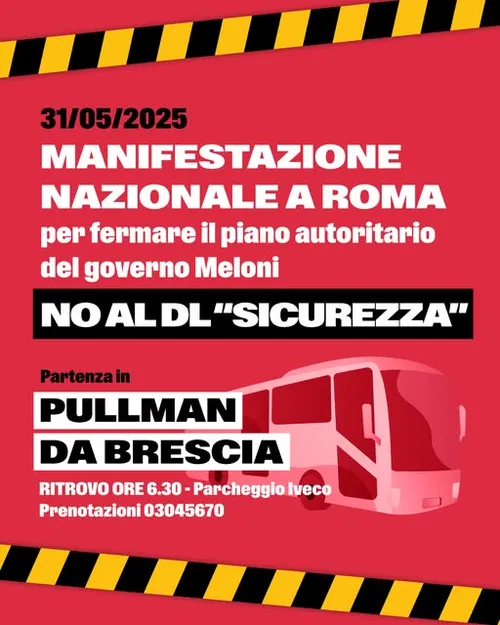 NO DL “SICUREZZA”: SABATO 31 MAGGIO PULLMAN DA BRESCIA A ROMA PER LA MANIFESTAZIONE NAZIONALE