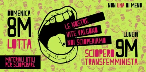 Anche quest’anno (in questo caso per il 9 marzo), Non Una di Meno ha chiesto a tutte le organizzazioni sindacali di convocare lo sciopero generale di 24 ore – dunque in tutti i settori del pubblico impiego e del privato – per garantire a tuttə lə lavoratricə con contratti di lavoro dipendente la possibilità di astenersi dal lavoro produttivo.