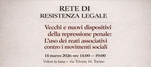 Radio Blackout - Info - Friday, March 13, 2026Questo sabato si tiene la prima occasione d’incontro nazionale della rete di legali che ragiona a partire dai vecchi e nuovi dispositivi di repressione penale.