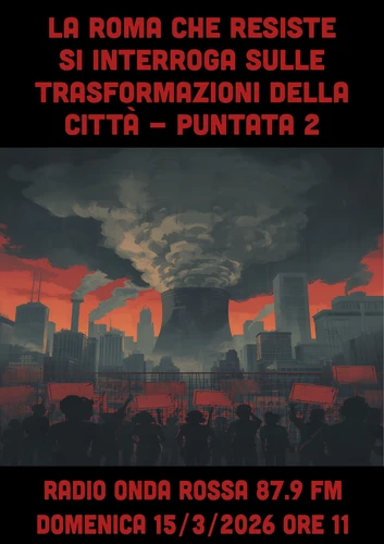 Radio Onda Rossa - Sunday, March 15, 2026In studio e al telefono compagn@ di diversi movimenti dei territori romani e dei Castelli sono intervenuti sui processi speculativi che stanno trasformando Roma e la nostra regione. Il consumo di suolo e la sua messa a profitto, anche alla luce del recente disegno di legge costituzionale su Roma Capitale in discussione in Parlamento, rivelano i processi di finanziarizzazione dei nostri luoghi di vita.