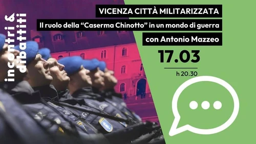 #Vicenza, martedì 17 marzo, ore 20.30 - Incontro-seminario: "Vicenza città #militarizzata: il ruolo della Caserma Chinotto in un mondo di #guerra".