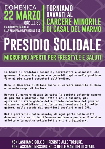 [2026-03-22] Presidio Solidale al carcere minorile di Casal del Marmo @ Carcere Minorile di Casal del Marmo