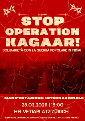 Soccorso Rosso Proletario - Wednesday, March 18, 202628 marzo internazionalista contro Modi/Trump/Netanyahu Campagna Internazionale di Emergenza contro l’Operazione Kagaar Il Comitato Internazionale a Sostegno della Guerra Popolare in India (ICSPWI) chiama le forze democratiche, progressiste, antifasciste, antimperialiste e rivoluzionarie di tutto il mondo a unirsi alla … Continua a leggere→