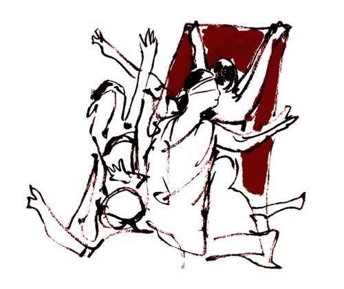 (archivio disegni napolimonitor)Claudia Castellucci vive a Cesena, e nel teatro Comandini, storica sede della Societas Raffaello Sanzio, sta costruendo il suo ultimo happening del 2025. Drammaturga e coreografa, dagli anni Novanta ha sperimentato la scuola come luogo di ricerca intorno alla rappresentazione, pubblicando nel 2015 per l’editore Quodlibet, Setta. Scuola di tecnica drammatica. Nel 2014 ha fondato la Scuola Cònia, un corso estivo di Tecnica della Rappresentazione che ha diretto fino al 2025, rivolto “a studenti che vogliono realizzare le loro idee in un contesto critico, alimentato da diversi docenti esterni, specialisti di discipline estetiche”. Nel 2020 Claudia Castellucci con lo spettacolo Fisica dell’aspra comunione ha ricevuto il Leone d’Argento per la sezione danza della Biennale di Venezia curata da Marie Chouinard. La sua storia artistica prende avvio nel 1981 quando col fratello Romeo e i fratelli Chiara e Paolo Guidi, fonda la compagnia teatrale Societas Raffaello Sanzio per “un teatro dalla scena prevalentemente visiva, plastica e sonora”. Il loro modo innovativo di concepire l’arte scenica si afferma nel panorama internazionale già dagli anni Novanta e dal 2006 la compagnia “si trasforma in Societas, dando luogo a sviluppi artistici distinti per ognuno degli artisti fondatori”.