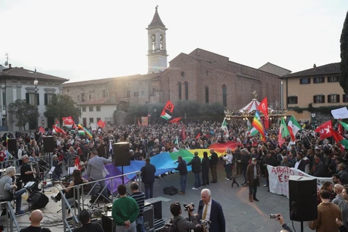 Il riferimento è anche alla manifestazione del centrosinistra di piazza delle Carceri, dove si è svolto lo stantio ripetersi di interventi sulla difesa della Costituzione e i valori dell’antifascismo storico alla presenza del presidente della Regione Eugenio Giani, membri di spicco del centrosinistra regionale e locale, e sindacati confederali. Intervistato sulla manifestazione Giani ha dichiarato «Come faremmo noi oggi in Toscana senza quel 15% di persone che sono residenti ma non cittadini e che animano le nostre attività produttive, i nostri luoghi di lavoro, di formazione, di studio.», confermando il mero economicismo su cui si fonda il suo antirazzismo.