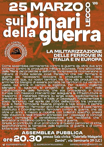 Lecco, 25 marzo: “Sui binari della guerra”. Assemblea pubblica sulla militarizzazione delle ferrovie