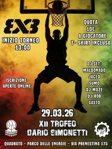 Domenica 29 Marzo torna l'evento di street basket più atteso della primavera romana: il 12° Torneo 3x3 - Trofeo Dario Simonetti. Come da tradizione, ci ritroveremo al Quadrato della exSNIA per onorare la memoria di Dario a colpi di crossover e tiri da tre.