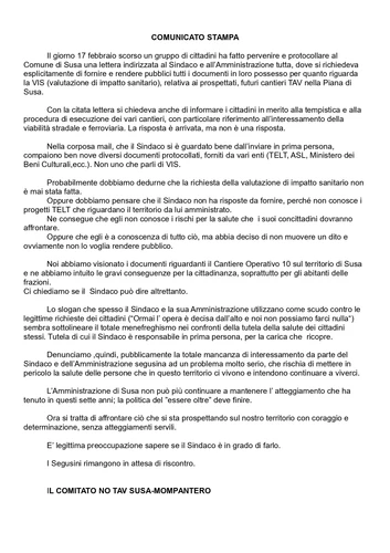 The post COMUNICATO STAMPA DEL COMITATO NO TAV SUSA - MOMPANTERO first appeared on notav.info.