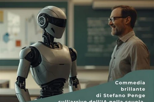Lo spettacolo mette in scena in maniera comica l’arrivo dell’IA in un piccolo istituto comprensivo, con le difficoltà, i dubbi, le dinamiche interne tra docenti e con il dirigente.