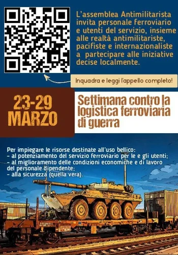 Dal 23 al 29 marzo l’assemblea Antimilitarista ha lanciato una settimana di informazione e lotta contro la logistica militare ferroviaria.