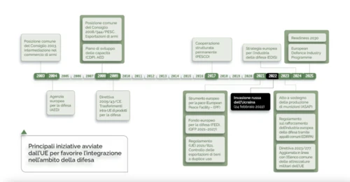 Fondamentalmente l’Unione Europea tenta di facilitare l’accesso ai finanziamenti e ridurre la frammentazione e la disarticolazione delle filiere produttive belliche. Per facilitare l’accesso ai finanziamenti sono state disposte varie misure: