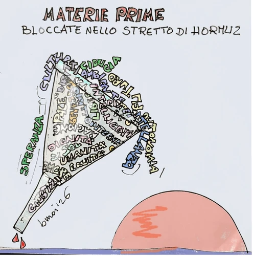 …Hormuz, Governo Meloni… il mare* di Benigno Moi Assodato che le vignette non vanno spiegate… ma sono un sasso buttato come spunto di riflessione, per ogni vignetta almeno un link (forse) * “il mare in un imbuto” è rubato ad Italo Calvino che, nella prefazione al libro “Le Voci della Sera” di Natalia Ginzburg, usò la metafora “La poesia è sempre stata