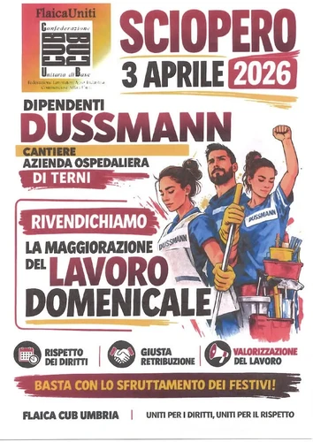 Radio Blackout - Info - Friday, March 27, 2026Il primo approfondimento lo abbiamo fatto in compagnia di Marco Ricci, Flaica Cub Terni, sullo sciopero proclamato da* lavorat* della Dussmann dell’azienda ospedaliera ternana previsto per il 3/04/2026.