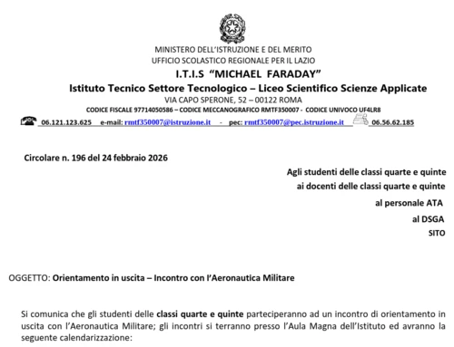 Il potenziamento della operatività militare avrà grandi ricadute nei settori della meccanica, elettronica e sistemistica. Proprio il campo di interesse del Liceo Faraday. Siamo sicuri e sicure che gli ufficiali dell’aeronautica avranno illustrato questo vantaggio professionale futuro, utile di fronte alle minacce ibride internazionali e alla sicurezza nazionale.