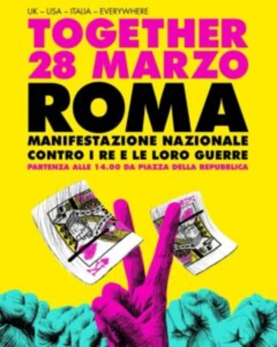 Pressenza - Saturday, March 28, 2026È iniziata la due giorni di mobilitazione globale contro i re e le loro guerre indetta dal Movimento No Kings Italia, di cui Amnesty International Italia è parte. Venerdì 27 marzo dalle ore 15:30 alla Città dell’Altra Economia si è svolto un concerto gratuito. Il 28 marzo il corteo nazionale partirà alle ore 14 da Piazza della Repubblica e arriverà a Piazza San Giovanni. Centinaia gli autobus che arriveranno da tutta Italia.