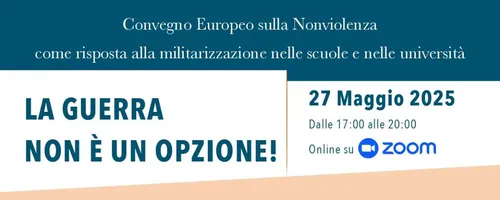 Martedì, 27 maggio online: Convegno Europeo sulla Nonviolenza come risposta alla Militarizzazione nelle Scuole e nelle Università