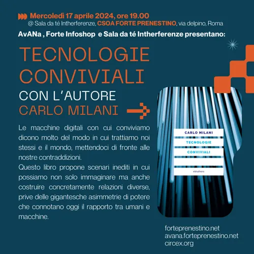 Il libro di Carlo Milani, "Tecnologie Conviviali" propone scenari inediti in cui possiamo non solo immaginare ma anche costruire concretamente relazioni diverse, prive delle gigantesche asimmetrie di potere che connotano oggi il rapporto tra umani e macchine.
