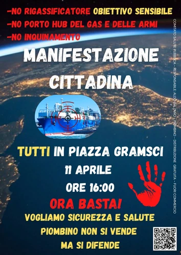 11 aprile manifestazione a Piombino perché la città non vuole essere un hub del gas e delle armi.