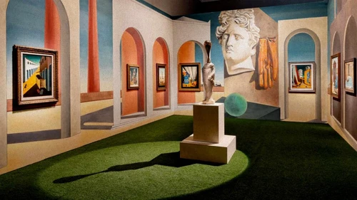 Al di là dei piccoli approfondimenti tematici nelle altre sedi, la spina dorsale del progetto Metafisica/Metafisiche prende corpo nelle sale di Palazzo Reale. La mostra si snoda attraverso una serie di nuclei tematici che corrispondono alle varie sale e avrebbe la pretesa di dimostrare non solo come questa corrente artistica continui a influenzare in maniera persistente le arti figurative del Secondo dopoguerra per arrivare fino ai giorni nostri, ma come questa influenza si diffonda in discipline quali l’architettura, la fotografia, il cinema, la moda e il design, fino al mondo della musica e ai fumetti. L’intento, ambizioso, si ispirava alla mostra seminale Futurismo & Futurismi, ospitata nel 1986 a Palazzo Grassi a Venezia, di cui ricalca più o meno l’impostazione. L’esposizione veneziana, però, funzionava poiché molti artisti apparentati con il Futurismo si erano dedicati in prima persona a discipline quali il cinema, la musica e la fotografia, offrendo quindi un punto di partenza storico e materiale da cui avviare l’indagine. Questo, invece, succede solo in minima parte con i nomi della Metafisica. E però, nel richiamare l’antecedente sul Futurismo, anche a Palazzo Reale viene esaltata più volte l’italianità delle due avanguardie. Se da una parte è un dato fattuale, dall’altra pare arduo non sentire l’eco di un certo tipo di retorica nazional-popolare-populista cara al governo in carica. Prima spia di una cultura usata come vessillifera della politica pagante?