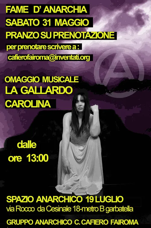 Spazio Anarchico 19 Luglio - Via Rocco da Cesinale, 18, 00154 Roma RM(sabato, 31 maggio 13:00)