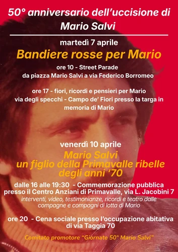Per ricordare Mario Salvi nell'attualita' dei conflitti presenti, vi invitiamo alle giornate di lotta e riflessione previste per il 50° anniversario dell'uccisione di Mario Salvi: