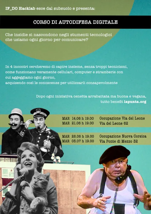 If_Do - Monday, June 13, 2022Ifdo, l’hacklab fiorentino, esce dal subsuolo e presenta… Corso di autodifesa digitale Che insidie si nascondono negli strumenti tecnologici che usiamo ogni giorno per comunicare? In 4 incontri cercheremo di capire insieme, senza troppi tecnicismi, come funzionano veramente cellulari, computer … Continue reading →