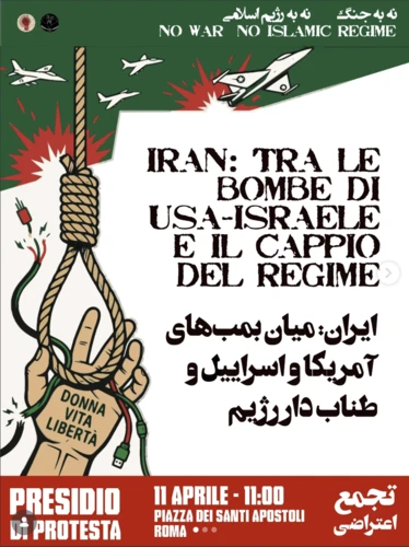 11 aprile: ore 11 Piazza Santi Apostoli Iran tra le bombe sio-imperialiste e il cappio del regime