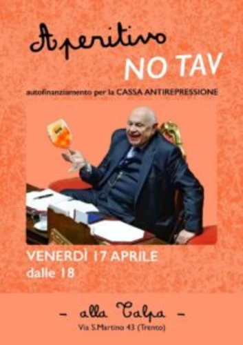 Apertivo per finanziare la difesa contro le denunce per le proteste No TAV di primavera 2023, a Trento il 17 aprile