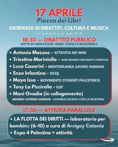 #nowar #Catania, venerdì 17 aprile, ore 18.30 - Dibattito pubblico: Rotte di liberazione, Mare, Popoli e #Resistenza #stopthegenocideingaza🇵🇸