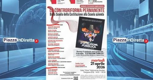 Un’intera giornata di approfondimento e confronto sul futuro della scuola italiana. È in programma per martedì 21 aprile 2026, presso la sala “Elios” del Ristorante Garden di Pergusa, il seminario di formazione e aggiornamento dal titolo “La controriforma permanente – dalla Scuola della Costituzione alla Scuola azienda”.https://www.piazzaindiretta.it/2026/04/13/seminario-sulla-scuola-pubblica-a-enna-confronto-su-la-controriforma-permanente-promosso-da-flc-cgil/