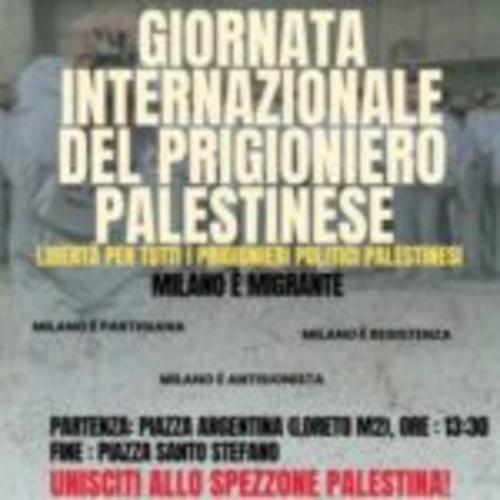doamni a Milano iniziativa – Giornata Internazionale del prigioniero palestinese SABATO 18 APRILE MILANO E’ MIGRANTE E PALESTINESE!! CONTRO GUERRA E GENOCIDIO! https://www.csavittoria.org/2026/04/16/sabato-18-aprile-milano-e-migrante-e-palestinese-contro-guerra-e-genocidio/ SABATO 18 APRILE GIORNATA INTERNAZIONALE IN SOLIDARIETA’ CON I PRIGIONIERI PALESTINESI concentramento in Piazza Argentina (Loreto M2) ore 13:30 Tutte e tutti in piazza contro la criminale guerra imperialista-sionista, contro il riarmo e il genocidio del popolo palestinese. FUORI