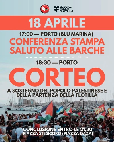 Contropiano - Saturday, April 18, 2026Appuntamento di piazza il 17 e 18 aprile a Catania Non siamo ingranaggi della guerra e del genocidio Esistono questioni che non possono più essere aggirate, né nascoste dietro la retorica istituzionale: la guerra oggi passa dalle nostre mani. Passa dai porti, dagli aeroporti, dalle ferrovie. Passa dalla logistica, dall’industria, […]