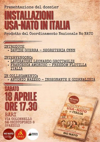 #nowar #Bari, oggi sabato 18 aprile, ore 17.30 - Presentazione del dossier "Installazioni USA-#NATO in Italia".