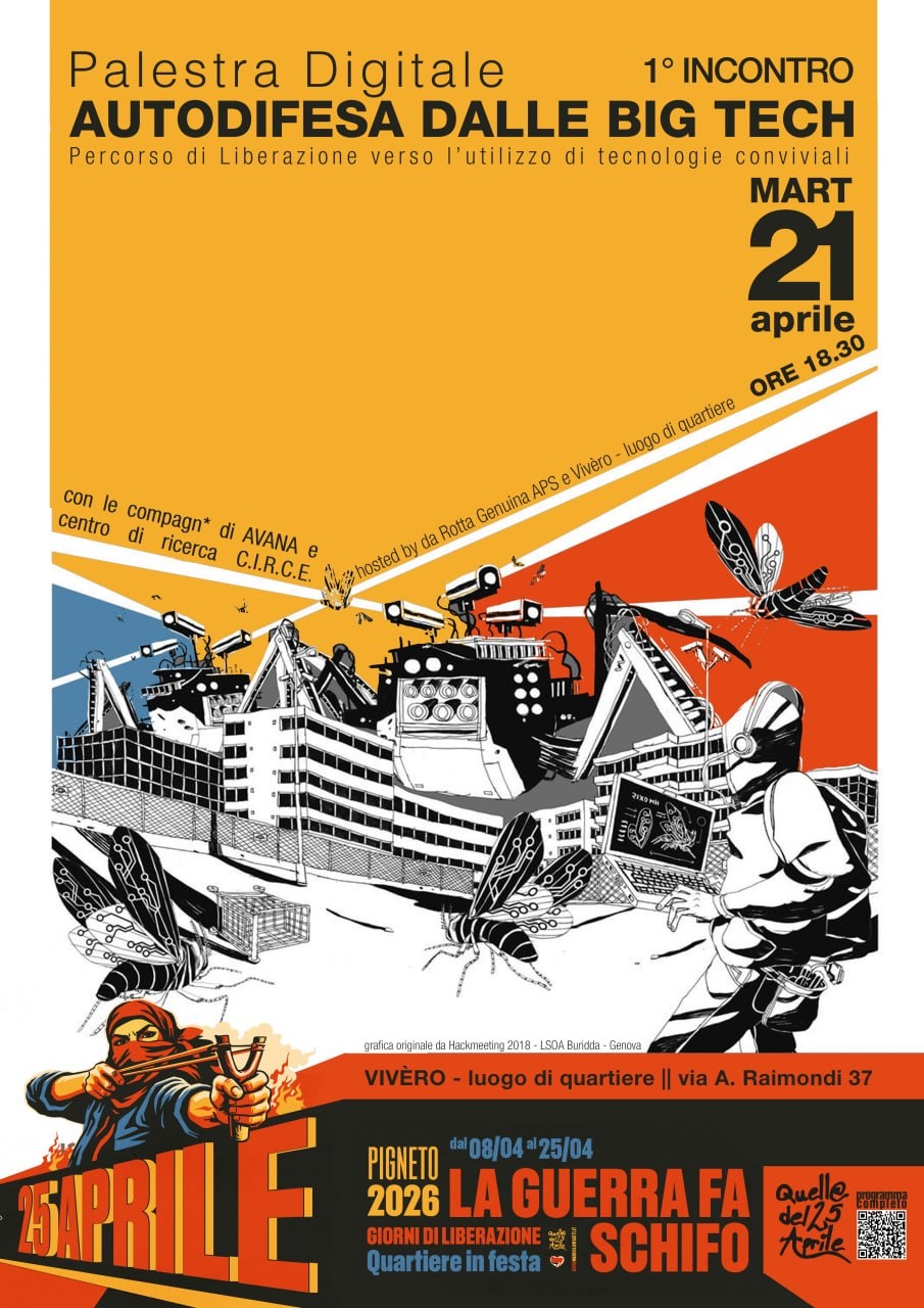 “Impariamo insieme a usare strumenti e alternative che non alimentano sistemi di controllo, guerra e sorveglianza”