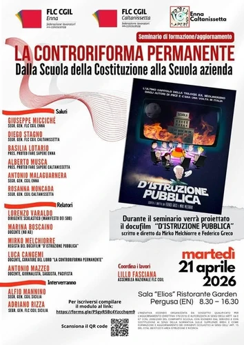 #Enna, martedì 21 aprile, ore 8.30 - La controriforma permanente. Dalla #Scuola della #Costituzione alla Scuola azienda