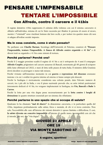 GIOVEDÌ 23 APRILE: CON ALFREDO CONTRO CARCERE E 41 BIS