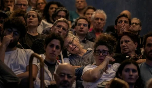 I partecipanti piangono durante la cerimonia in diretta a Tel Aviv lunedì. Crediti: Itai RonCirca un migliaio di israeliani e palestinesi si sono riuniti lunedì sera per celebrare insieme la Giornata della Memoria e piangere le vite perse da entrambe le parti del conflitto in una cerimonia congiunta, tenutasi simultaneamente in Israele e in Cisgiordania.