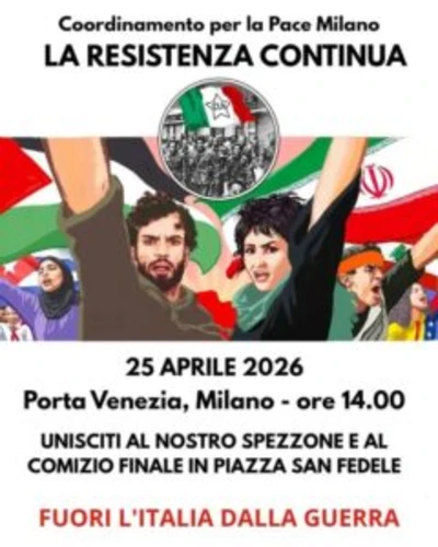 Per queste ragioni, il Coordinamento per la Pace – Milano, esprimendo solidarietà ai popoli di Palestina, Libano e Iran, sarà come sempre nel corteo tra gli antifascisti ma formando uno spezzone autonomo con interventi alternativi alla conclusione per riaffermare, nelle attuali condizioni, la Resistenza continua contro la guerra, il riarmo e le aggressioni.
