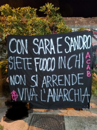 Brughiere - Wednesday, April 22, 2026Diffondiamo: viscida e vorace è la mano dello stato con un morso violenta e veloce vorrei ucciderla Dopo un mese Sara e Sandro sono ancora nei nostri pensieri. Giorno dopo giorno brucia sempre più! Alimenta un fuoco che ci porterà sempre più, dalla parte di chi mette in gioco il proprio corpo nella lotta alla … Leggi tutto "DUE RIGHE CON GLI OCCHI RIVOLTI ALLE STELLE"