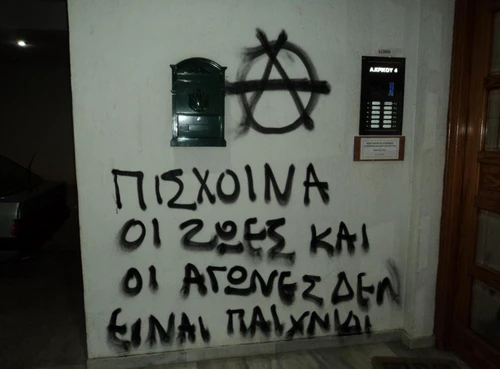La Nemesi - Thursday, April 23, 2026Le nostre vite e le nostre lotte non sono un gioco. Scritte e volantini presso l’abitazione del magistrato Alexandras Pischoina, attualmente impegnata nel processo contro le anarchiche e gli anarchici…