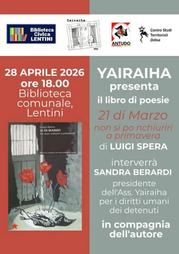 mezzoradaria - Thursday, April 23, 2026«Sono ventuno le poesie di Luigi Spera raccolte in questa edizione, ventuno come la data del suo arresto, il giorno che ha dato avvio alla sua detenzione, prima nel carcere...