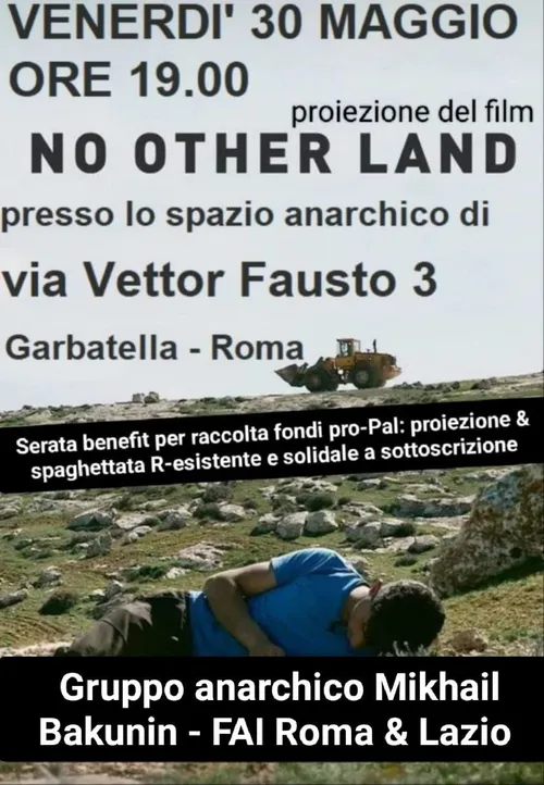 Gancio de Roma - Tuesday, May 27, 2025Proiezione "No other land" in solidarietà con la popolazione palestinese allo Spazio Anarchico Vettor Fausto