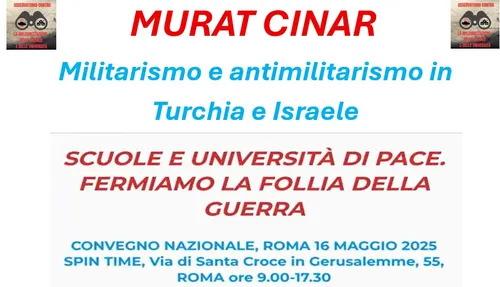Osservatorio contro militarizzazione di scuole e università - Wednesday, May 28, 2025Pubblichiamo il video dell’intervento dal titolo “Militarismo e antimilitarismo in Turchia e Israele” di Murat Cinar, giornalista freelance di origine turca, al convegno nazionale dell’Osservatorio contro la militarizzazione delle scuole e delle università svoltosi il 16 maggio a Roma presso Spin Time dal titolo Scuole e università di pace. Fermiamo la follia della guerra. La somiglianza tra la fenomenologia del processo di militarizzazione della Turchia e di Israele con quello italiano è impressionante: quale guerra ci prepariamo a combattere?