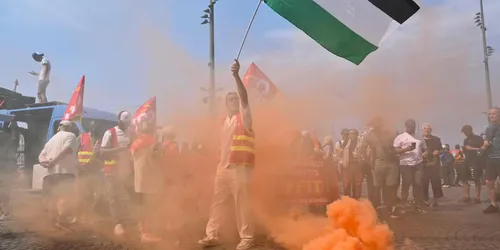 Vittoria dei lavoratori solidali con la Palestina al porto Fos-sur-mer di Marsiglia, dove i portuali francesi della CGT si sono rifiutati di caricare 14 tonnellate di munizioni e pezzi di ricambio per fucili mitragliatori israeliani su una nave cargo della compagnia ZIM diretta ad Haifa, Israele.