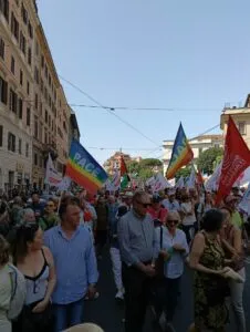 Durante la coloratissima manifestazione che si è svolta sabato scorso a Roma per il rispetto della dignità umana a Gaza, i giornalisti si affannavano a raccogliere le dichiarazioni dei leader politici.