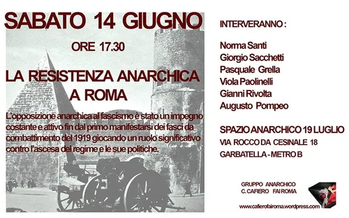 [2025-06-14] La Resistenza anarchica a Roma @ Spazio Anarchico 19 Luglio