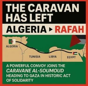 Perché ci impediscono di entrare in Egitto? Sono in contatto con le autorità tunisine, la società civile, personalità libiche ed egiziane che sono in contatto con i loro Paesi. E speriamo vivamente in autorizzazioni e agevolazioni per questa missione umanitaria. Se non ottenessimo i permessi, il convoglio di Bash starebbe partendo e dirigendosi verso il confine egiziano, e noi chiediamo un attraversamento diretto. Il divieto è in vigore, ma questo non è un viaggio turistico, è una carovana di lotta e solidarietà, e ogni passo rappresenta una pressione internazionale sull’assedio.