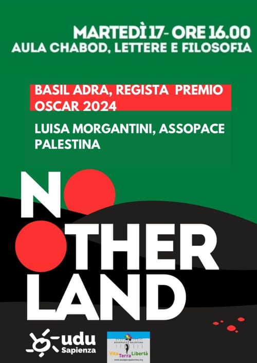 Martedì 17 giugno, ore 16.00, Aula Chabod, Lettere e Filosofia, Università La Sapienza, ROMA: incontro con il regista di “No Other Land” e Luisa Morgantini, Presidente di AssopacePalestina.